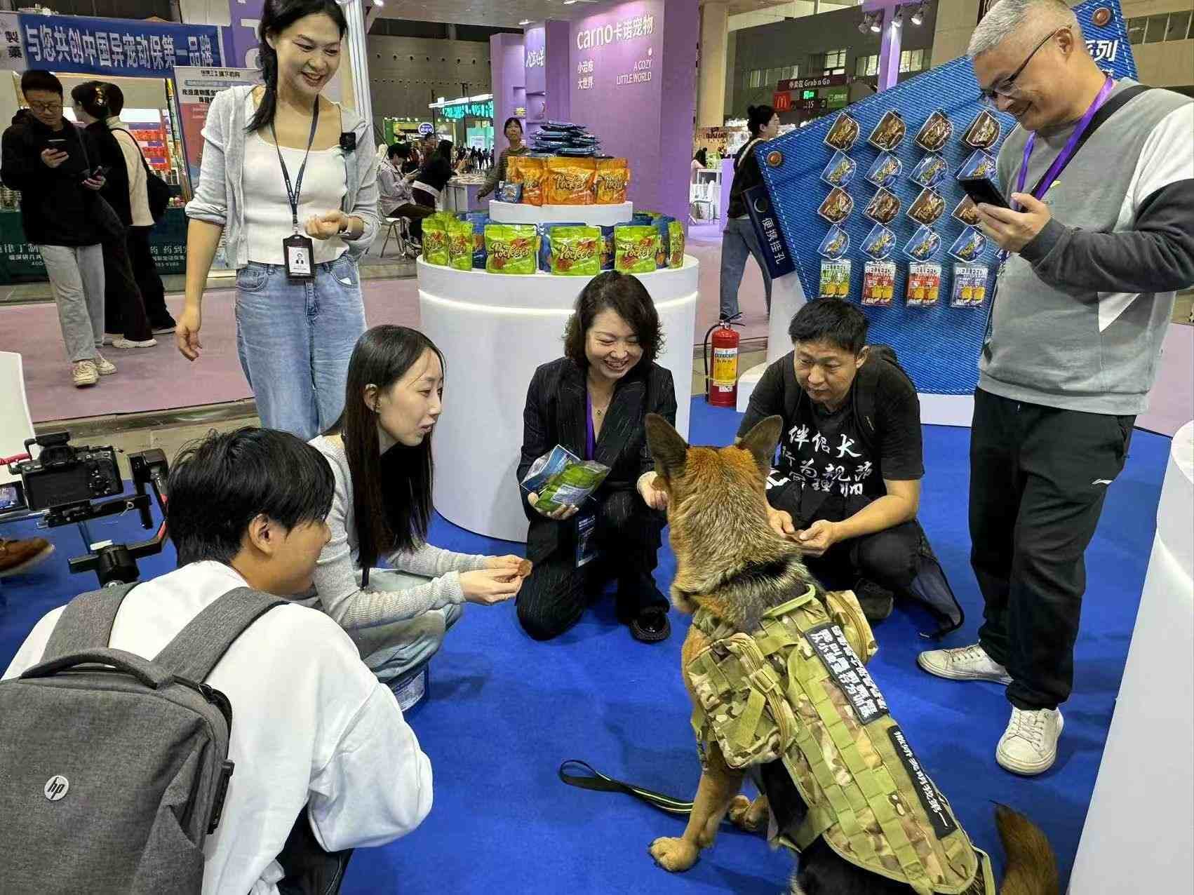 In-Depth Discussion Zone: Representatives from chain pet stores, premium pet hotels, outdoor-themed cafes, and cross-border e-commerce platforms across the Greater Bay Area and nationwide visited continuously. They showed strong interest in the concept of "transforming snacks into pet social currency."